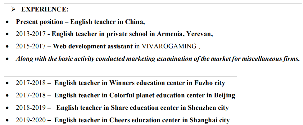 國籍: 烏克蘭 求職意向: 教師