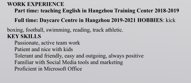 國籍: 其他 求職意向: 教師