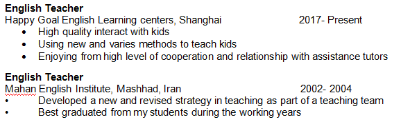 國籍: 其他 求職意向: 教師