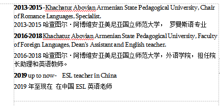 Amy。亞美尼亞,工簽職位是行政助理,現(xiàn)在重慶,求職重慶下學(xué)期職位。 |
