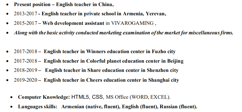 國籍: 其他 求職意向: 教師