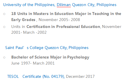 國籍: 其他 求職意向: 教師