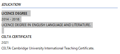 國籍: 西班牙 求職意向: 教師