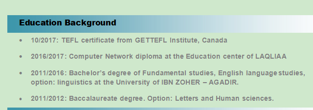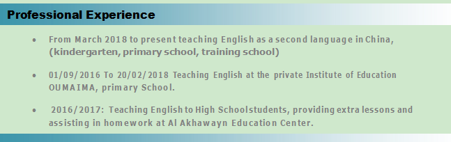 國(guó)籍: 摩洛哥 求職意向: 教師