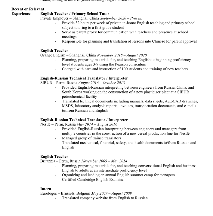 國(guó)籍: 澳大利亞 求職意向: 教師