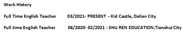 外教口音很好 形象也不錯 現(xiàn)在大連工作 最高學(xué)歷碩士 求職工簽轉(zhuǎn)聘崗位 |