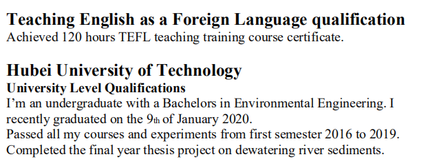 國(guó)籍: 摩洛哥 求職意向: 教師