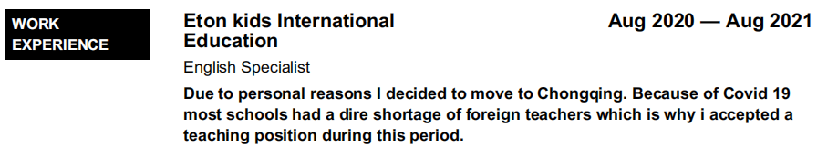 外教的口音非常棒 母語口音 有非常豐富的教學(xué)經(jīng)驗和管理經(jīng)驗 求職重慶和成都 |