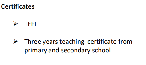 國(guó)籍: 摩洛哥 求職意向: 教師