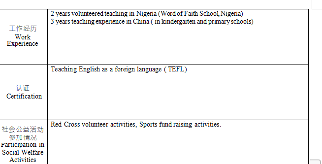 國(guó)籍: 澳大利亞 求職意向: 教師