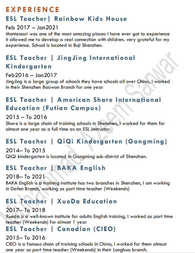 國(guó)籍: 摩洛哥 求職意向: 教師