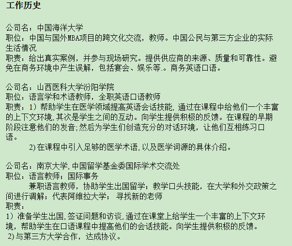 國(guó)籍: 摩洛哥 求職意向: 教師