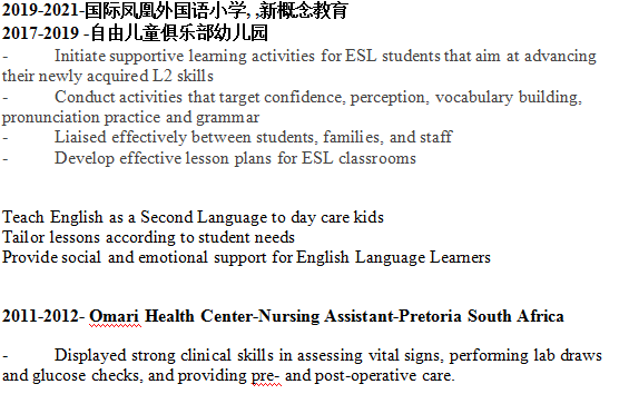 國(guó)籍: 澳大利亞 求職意向: 教師