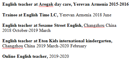 國(guó)籍: 澳大利亞 求職意向: 教師
