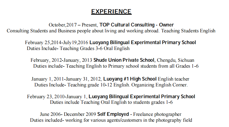 Richard。美國,家屬簽,目前在洛陽,正在認證學歷,求職公立 私立 小學 中學 高中職位, 能接受距離洛陽 高鐵5小時以內的城市。 |