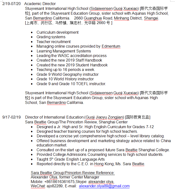 國(guó)籍: 孟加拉 求職意向: 教師