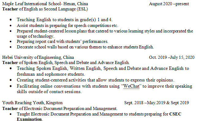 國籍: 其他 求職意向: 教師