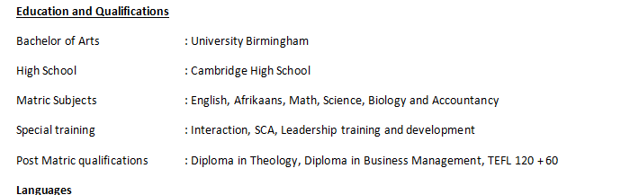 國(guó)籍: 澳大利亞 求職意向: 教師