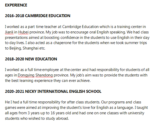國(guó)籍: 澳大利亞 求職意向: 教師