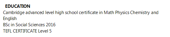 國(guó)籍: 摩洛哥 求職意向: 教師