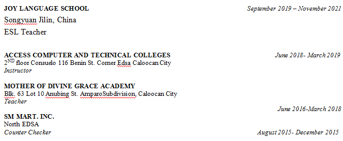 國籍: 其他 求職意向: 教師
