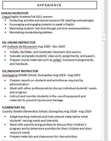 國(guó)籍: 西班牙 求職意向: 教師
