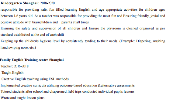 國(guó)籍: 澳大利亞 求職意向: 教師