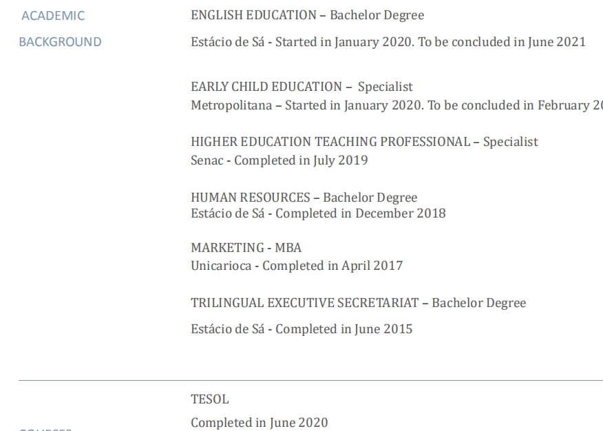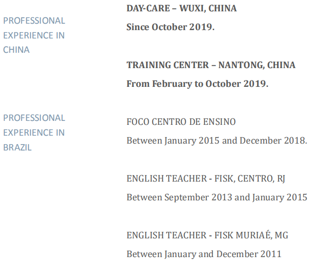 國籍: 西班牙 求職意向: 教師