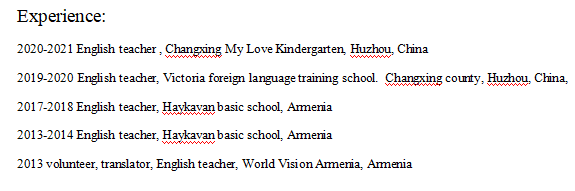 亞美尼亞,英語本科,轉聘, 求職不限制。協(xié)商薪資。 |