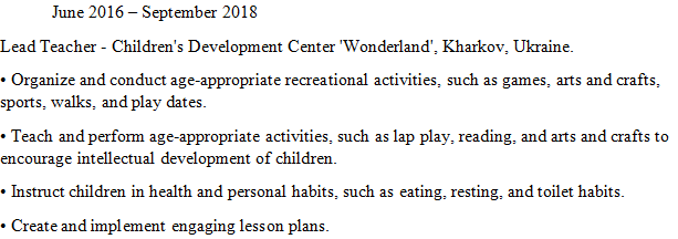 國籍: 白俄羅斯 求職意向: 教師