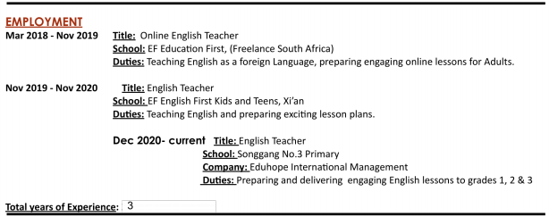國(guó)籍: 摩洛哥 求職意向: 教師
