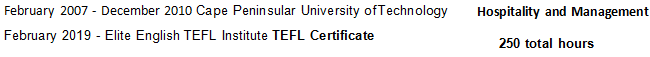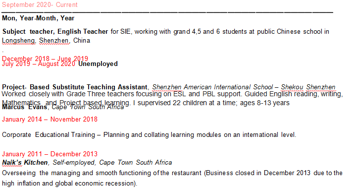國籍: 南非 求職意向: 教師