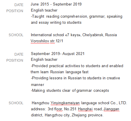 國(guó)籍: 俄羅斯 求職意向: 教師