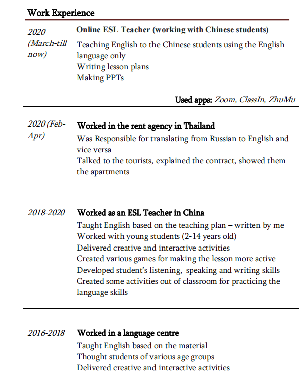 國(guó)籍: 俄羅斯 求職意向: 教師