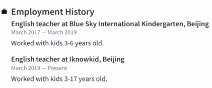 外教本科畢業(yè) 人很好溝通 性格很好 很活潑 現(xiàn)在北京房山 求職北京房山豐臺和大興職位 |