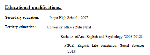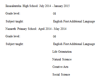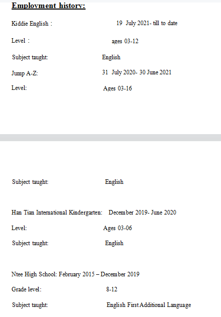 國籍: 南非 求職意向: 教師
