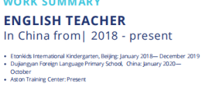 國籍: 格魯吉亞 求職意向: 教師