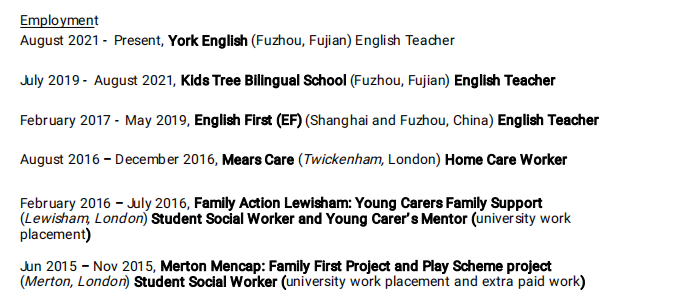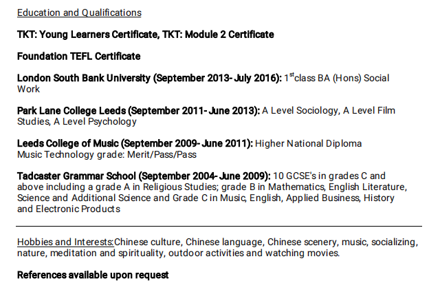 英國,本科-社會(huì)工作 經(jīng)驗(yàn)豐富 在福建,文教簽證轉(zhuǎn)聘,求職福州 。 |