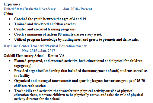 美國國籍 現(xiàn)在昆明 籃球教練(合同12/18到期) 體育和娛樂專業(yè)本科 在中國三年相關經(jīng)驗 求職體育職位 18+住宿以上 |