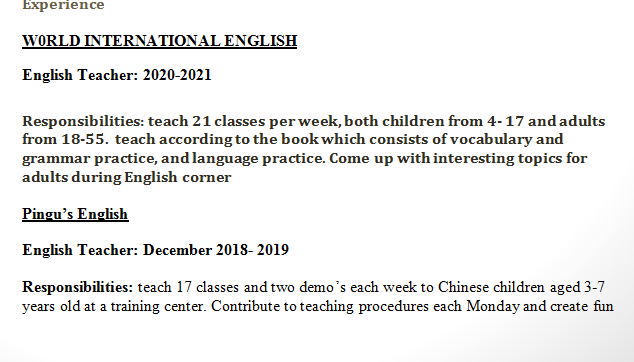 自我介紹,介紹國籍,年齡, 3年教學(xué)經(jīng)驗(yàn),其中2年中國經(jīng)驗(yàn), 個(gè)人性格優(yōu)勢(shì)