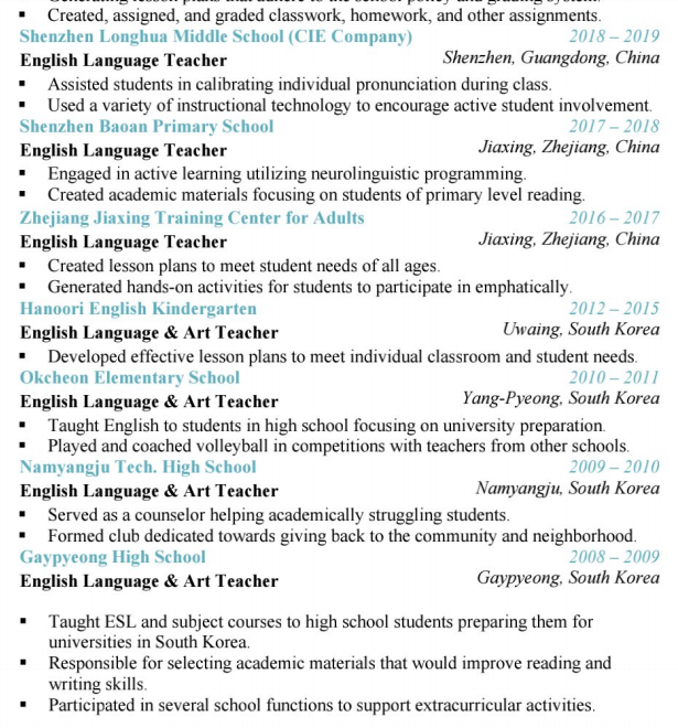 美國國籍 目前在廣州培訓(xùn)機(jī)構(gòu)工作 文教類工簽明年到期 有TEFL 本科新聞學(xué)專業(yè) 求職大學(xué)崗位 寒假后到崗