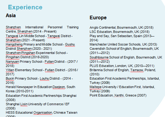 英國 在深圳 威爾士大學(xué),市場(chǎng)營銷專業(yè)本科, 碩士- 旅游專業(yè),有豐富經(jīng)驗(yàn) ,工作許可轉(zhuǎn)聘在7月中旬, 目前薪資 18+ , 求職廣東 , 成都,+ 上海下學(xué)期工作。 |