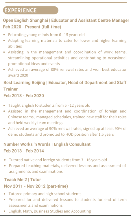 教學(xué)經(jīng)驗(yàn)豐富, 有tefl , 碩士, 薪資可以協(xié)商 |
