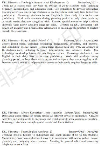 國(guó)籍: 美國(guó) 求職意向: 教師