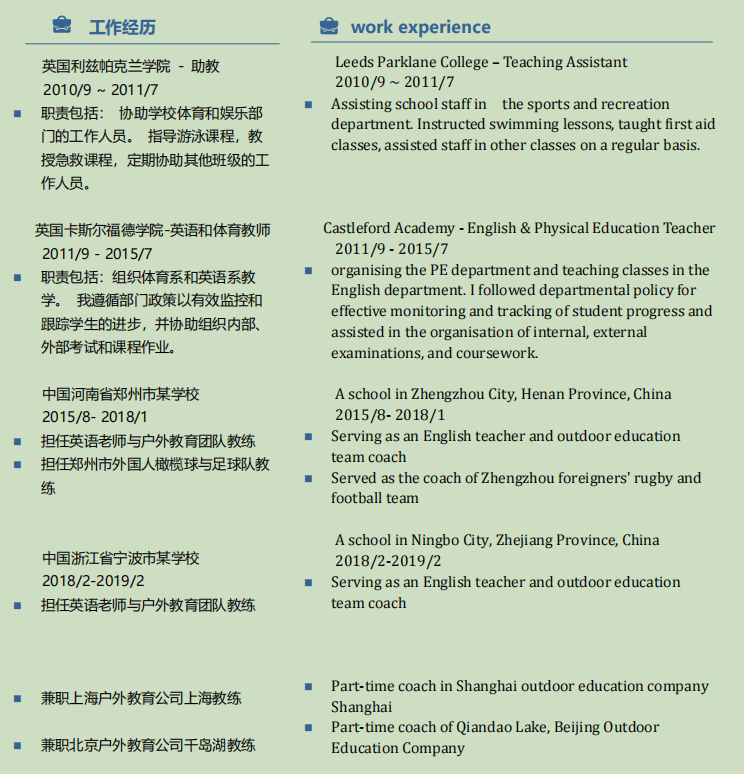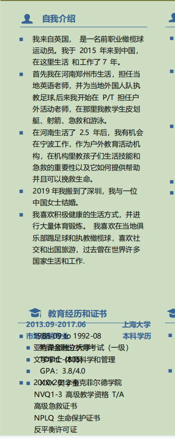 有豐富的橄欖球,射箭,游泳等體育教學(xué)經(jīng)驗(yàn), 求職最好教體育職位, |