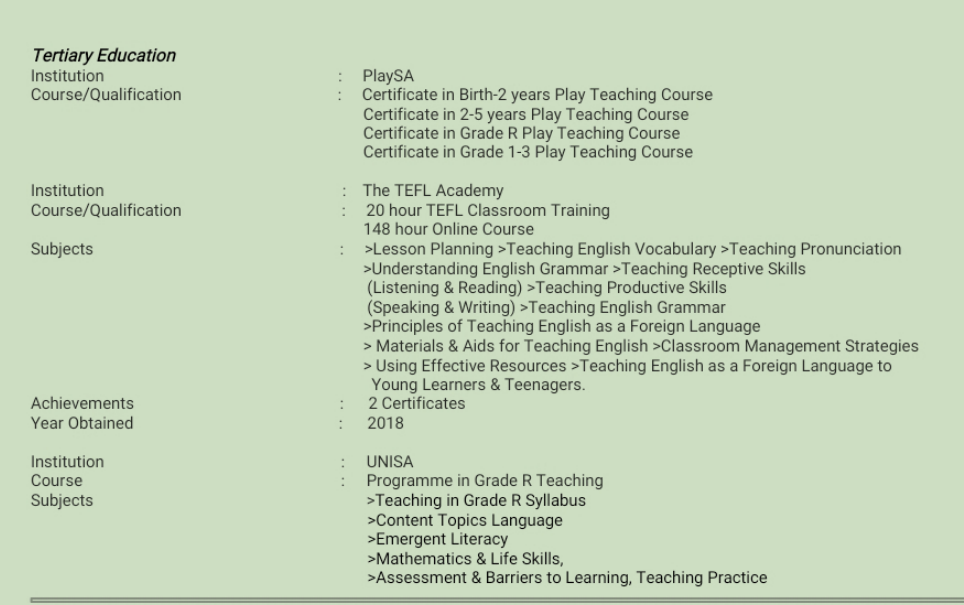 國(guó)籍: 南非 求職意向: 教師