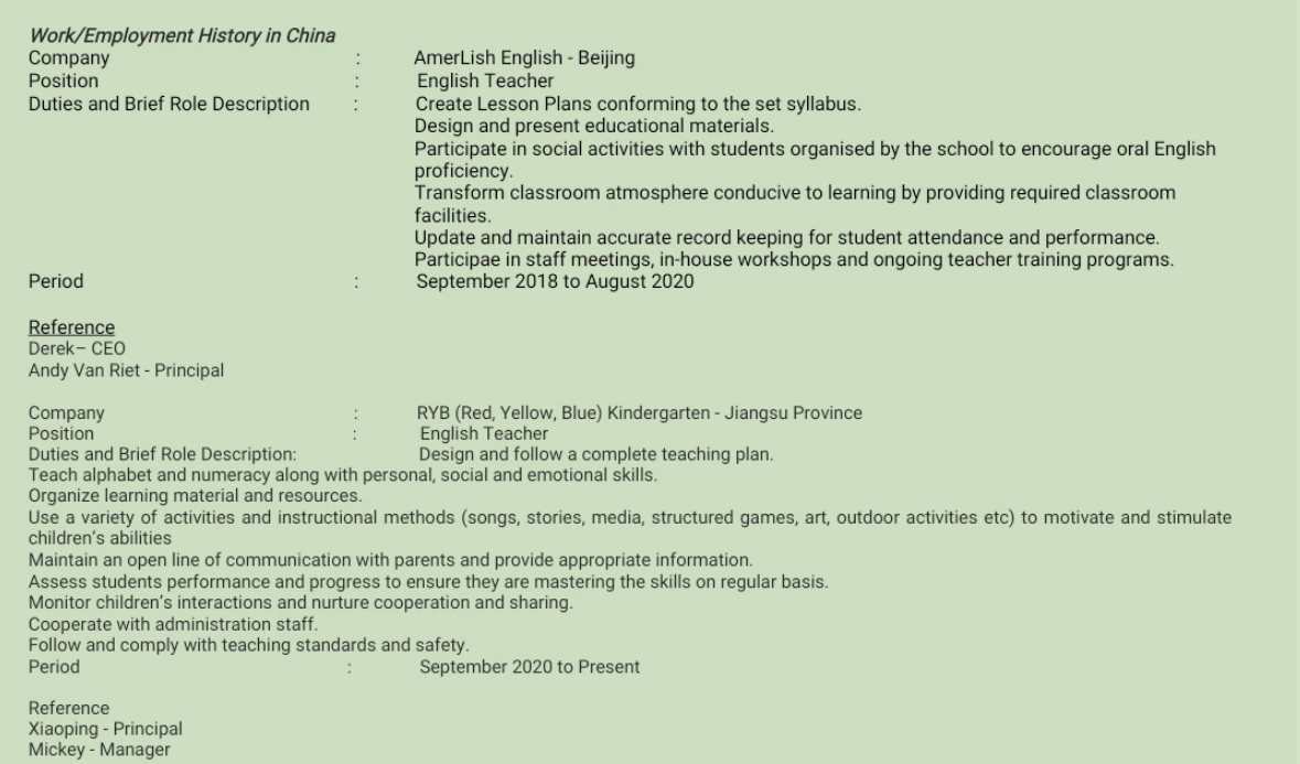 國(guó)籍: 加拿大 求職意向: 教師