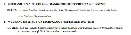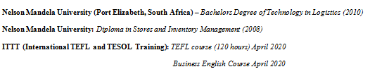 國籍: 南非 求職意向: 教師