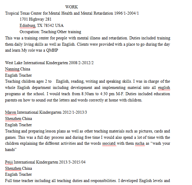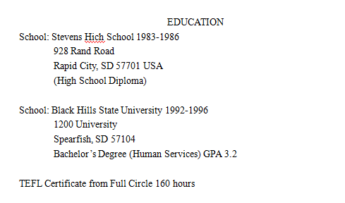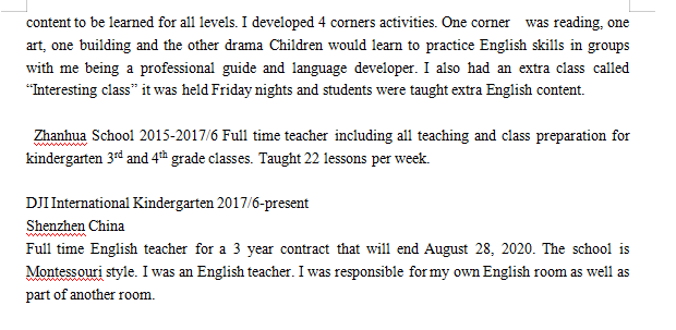 國籍: 美國 求職意向: 教師