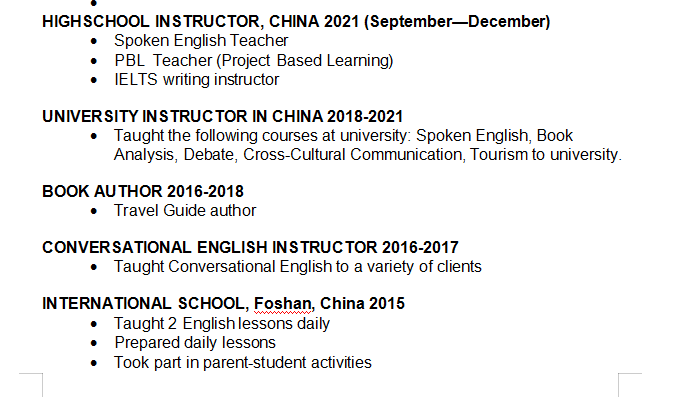 外教的工作經(jīng)歷